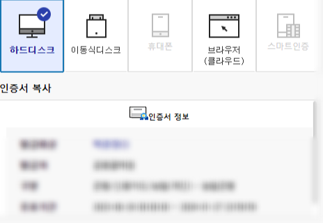 4.인증서 관리 선택하면 팝업창 뜸 -> 해당 인증서 선택 ->인증서 복사