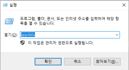 2.왼쪽 실행창 에서 appdata 입력