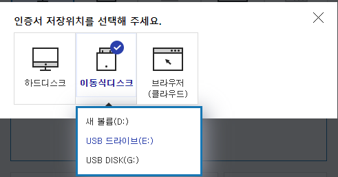 5.저장할 위치 선택 -> 해당 인증서 비밀번호 입력 -> 확인 -> 저장 완료