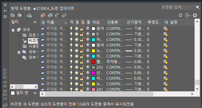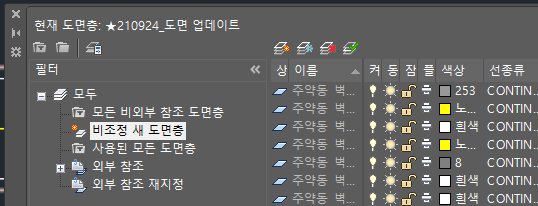◆ 필터 목록에 비조정 새 도면층 목록 없어짐
